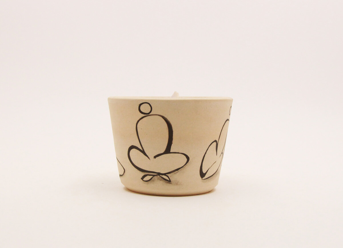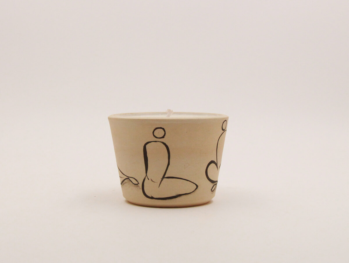Balance of Being is a handcrafted ceramic candle holder with a scented candle set inside, finished with hand-painted abstract figure drawings in black underglaze. Minimal, thoughtful, and quietly expressive, it is designed to bring stillness, warmth, and artistic character into the home.