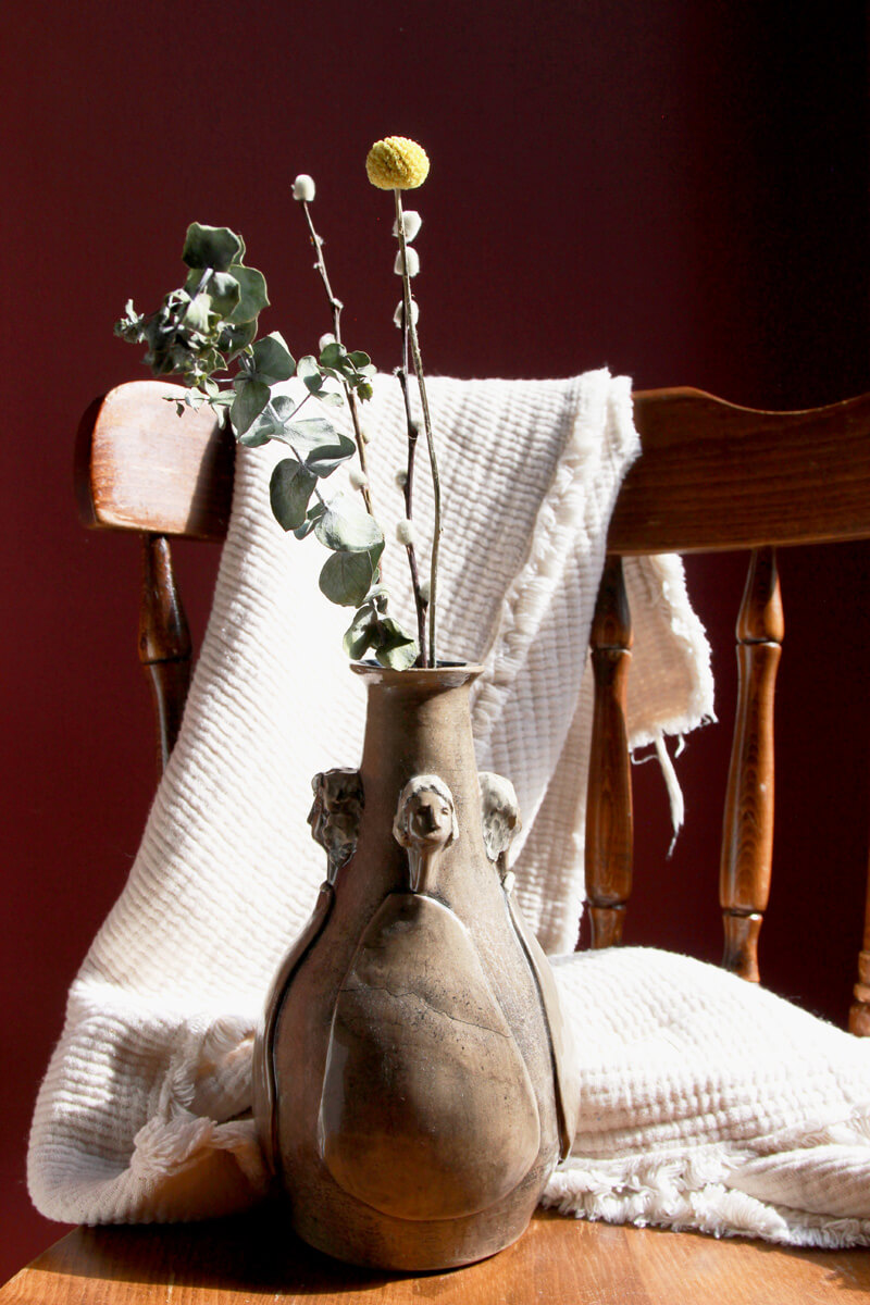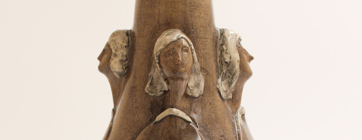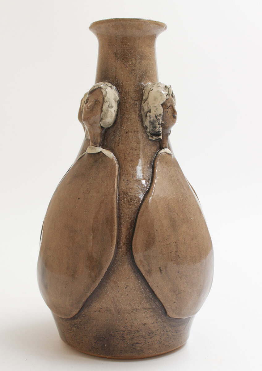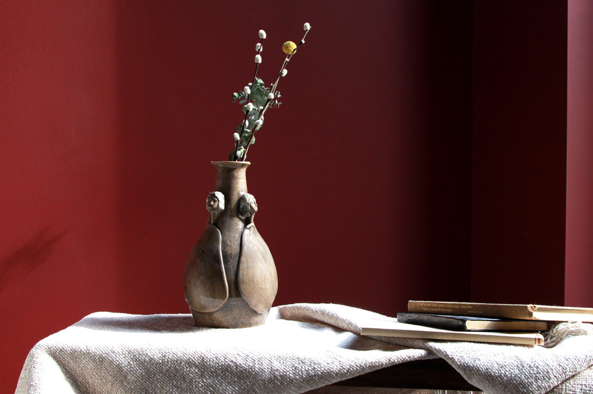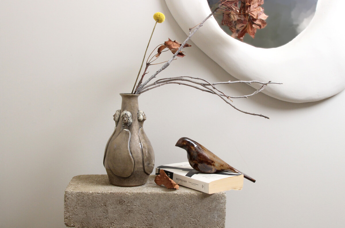 This exquisite handmade ceramic vase blends timeless artistry with contemporary refinement. Its warm, light brown hue is brought to life by a high-gloss finish, enhancing the depth and movement of the sculpted figures that gracefully emerge from its surface. Thoughtfully applied underglaze adds subtle yet expressive touches of colour, accentuating the details and giving the piece a sense of narrative and emotion. Both a functional vessel and a work of art, this vase is perfect for displaying floral arrangements or standing alone as a statement of handcrafted elegance. This vessel serves dual purposes — display it alone as a piece of art, or fill it with blooms for a lively decorative statement. However it is used, it brings beauty to your space.