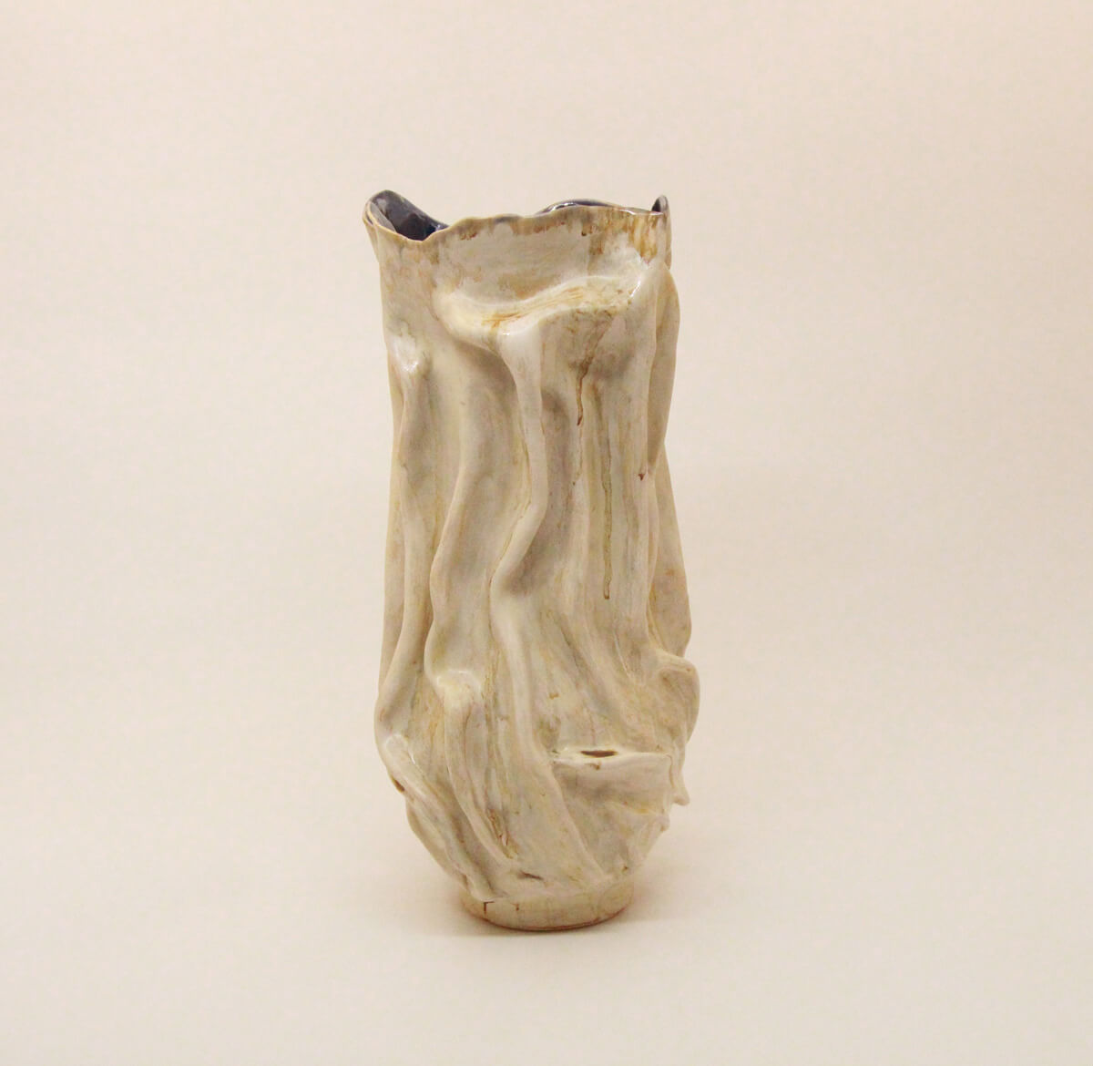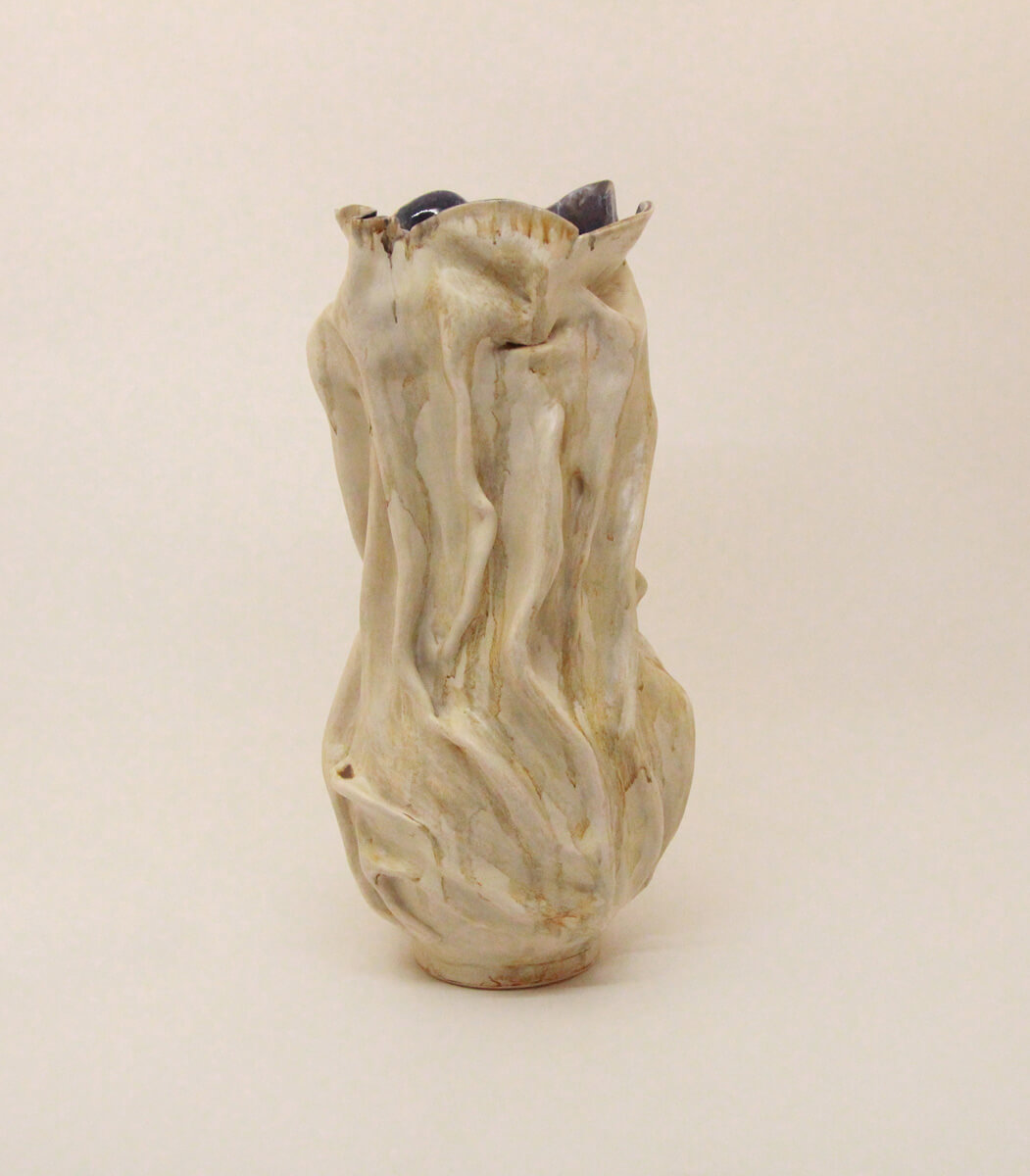 Folded Still is a tall handmade ceramic vase designed with flowing folds and a softly sculpted silhouette. Its textured surface and neutral finish give it a quiet, architectural beauty that works beautifully with florals or on its own.