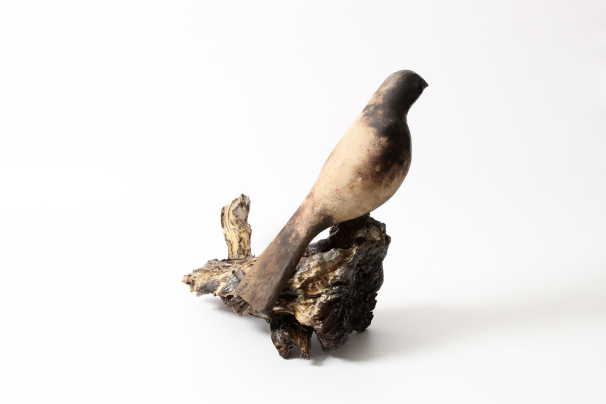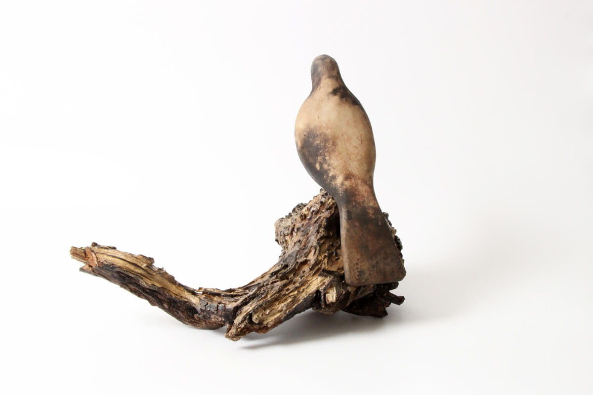 Nomad is a handmade ceramic sculpture that captures a solitary presence suspended between movement and rest. A single bird perches on a rugged, weathered branch, suggesting a temporary landing rather than a permanent home. The composition feels still, but not static — as though the figure has paused only briefly to observe its surroundings before continuing on.