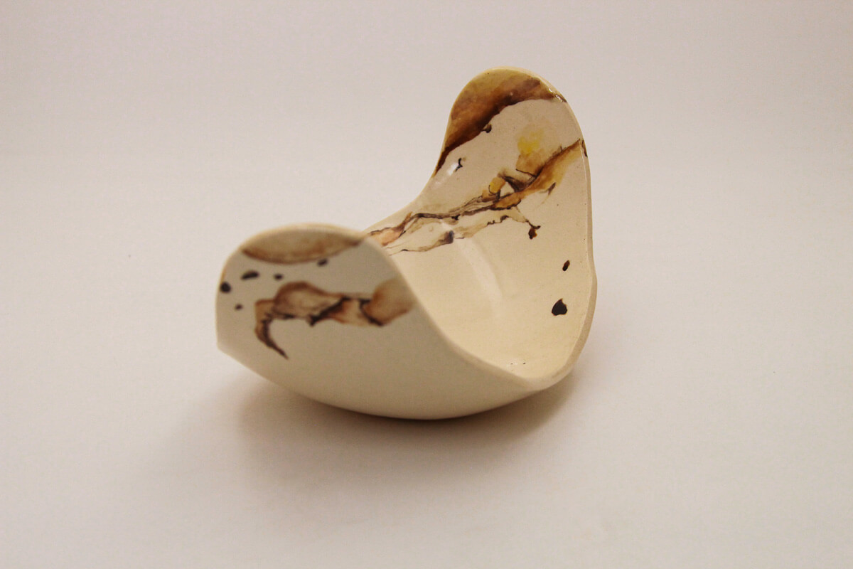 Painted is a sculptural ceramic bowl designed to bring artistry, warmth, and individuality into your space. Its flowing open form creates a sense of movement, while the painterly surface details introduce softness, depth, and a distinctly handmade character. The warm tones and glossy finish work together to give the piece a refined yet organic feel.