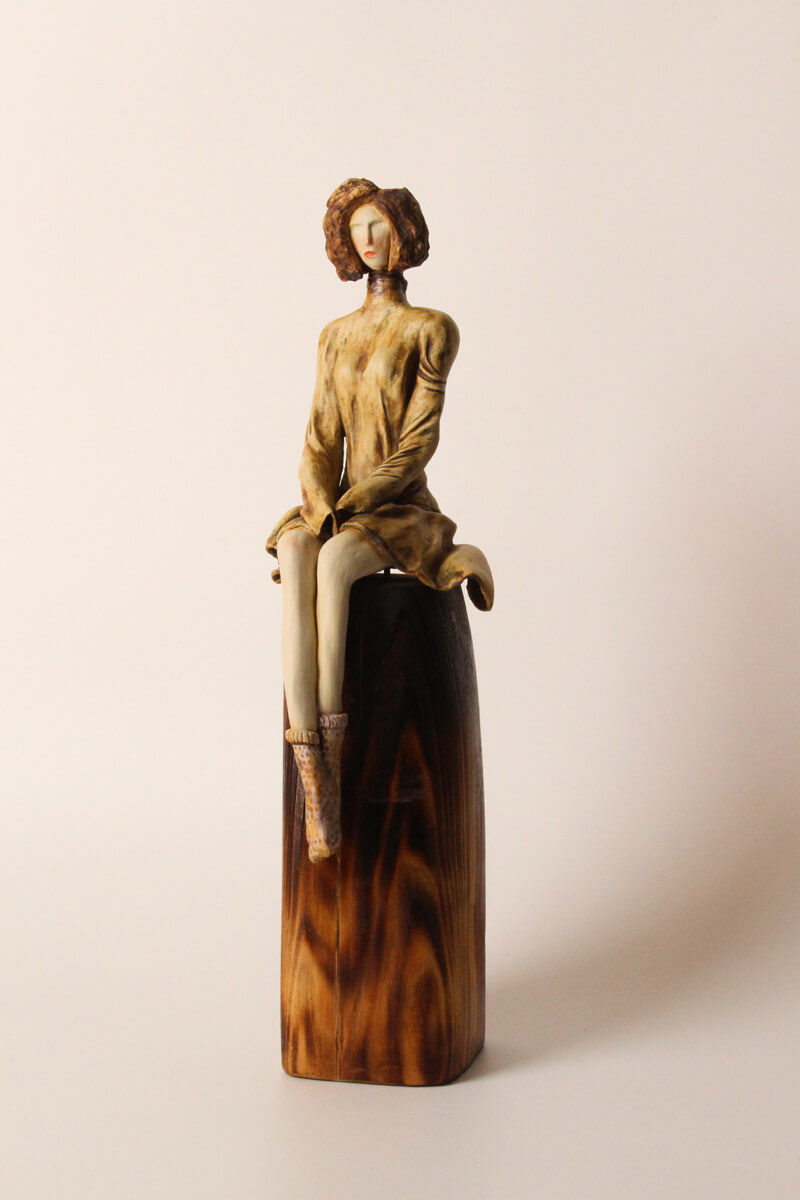 Poised is a handmade ceramic sculpture that expresses calm, restraint, and quiet confidence. The elongated seated figure rests in a moment of composed stillness, balanced and self-contained, with a posture that feels both delicate and assured. There is no excess in the gesture—only a subtle elegance that allows the form itself to speak.