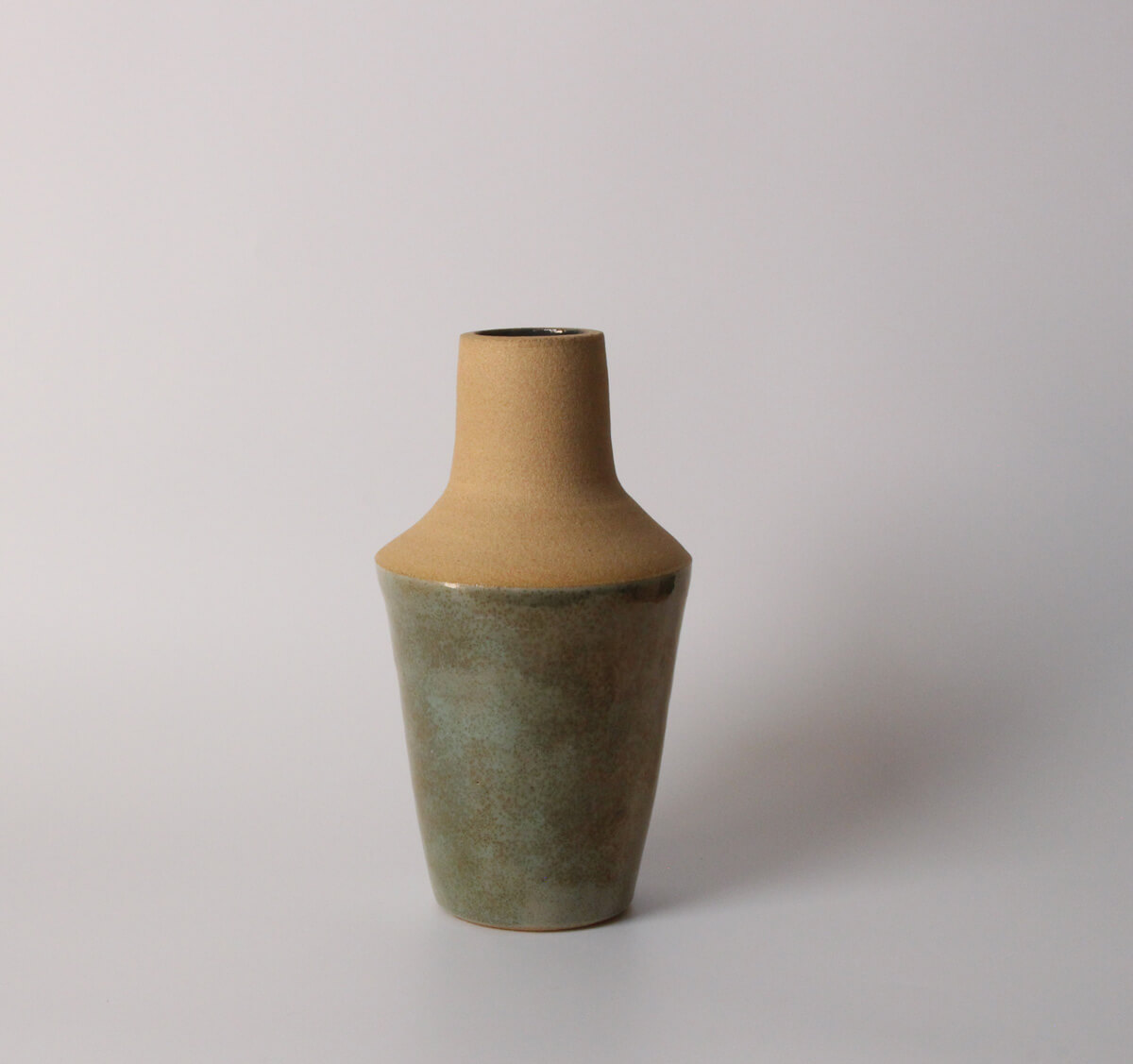 Reflection is a handcrafted ceramic vase that pairs a grounded, industrial feel with a refined sculptural form. Its natural clay texture and subtle tonal variation make it equally striking styled with stems or displayed on its own.