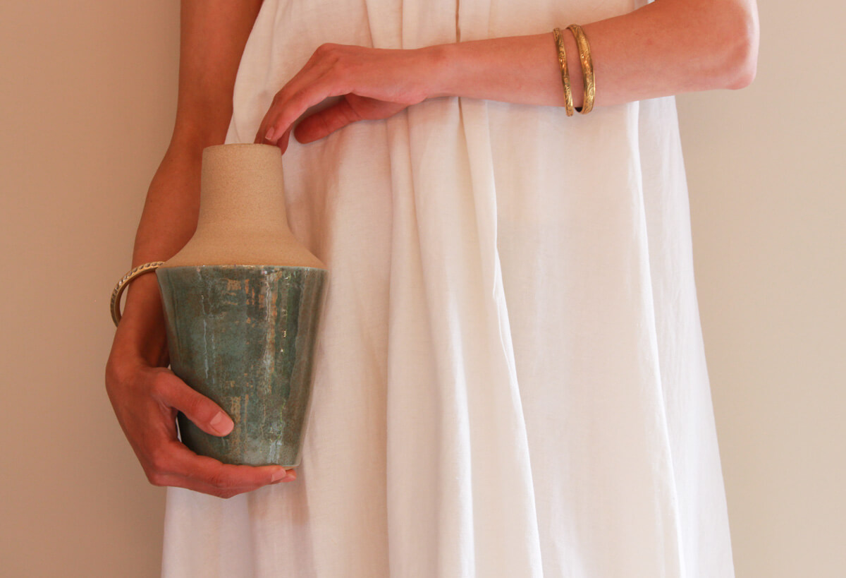 Beautiful whether filled with flowers or left empty, Reflection is designed to work both as a functional vessel and as a decorative object. Style it with a few sculptural branches, fresh stems, or let it stand alone as an artful accent on a console, shelf, or table. Artisan crafted in Los Angeles, this ceramic vase brings warmth, shape, and quiet sophistication to the spaces around it.