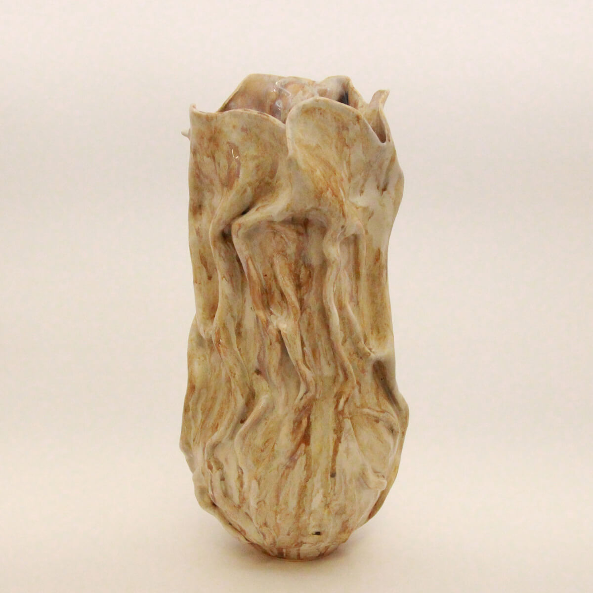 This organic ceramic vase captures the natural movement of weathered surfaces and flowing forms. Its sculpted texture and soft, earthy tones evoke a sense of time and transformation, blending strength with fragility. A one-of-a-kind statement piece, it brings quiet depth and character to any space. You can style this vase with a beautiful bouquet of blooms or display it as a stand-alone sculptural object.