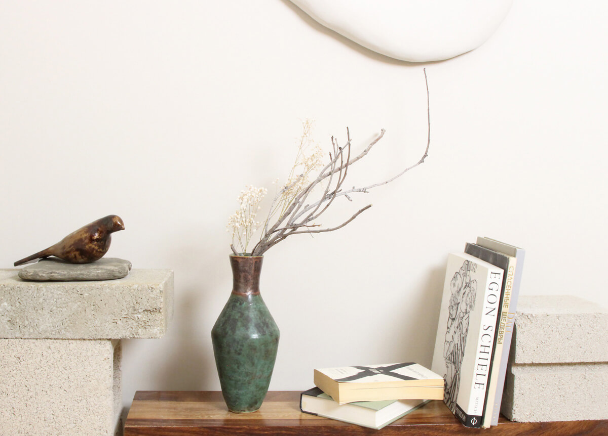 Designed to stand beautifully on its own or styled with a few minimal stems, Unity works as both a functional vessel and a decorative object. It suits modern, art deco, and industrial-inspired interiors, bringing warmth and sophistication to shelves, consoles, dining settings, or entryway styling. Artisan crafted in Los Angeles, it is a ceramic piece that celebrates restraint, proportion, and timeless decorative appeal.