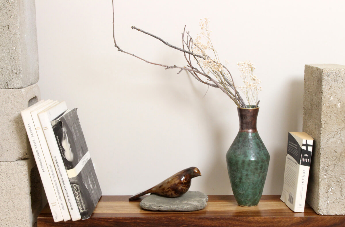 Green and copper glaze adds warmth, depth, and visual texture